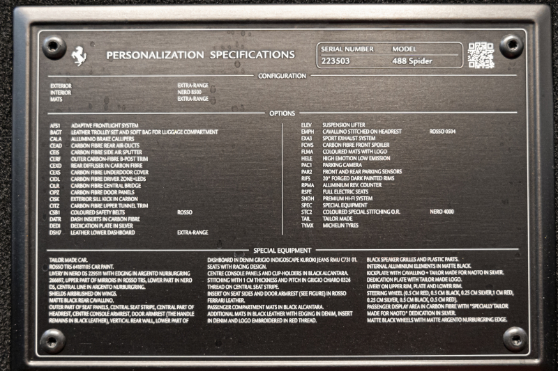 フェラーリ 488スパイダー テーラーメイド/OP2000万over/特別仕様内装
